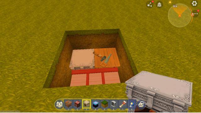 首先,想要节省外面的空间,就要考虑向下深挖。我们第一步要挖一个2X2的坑出来,将工作台,熔炼炉和一个储物箱都放进去,这就具备了基本的工作上的能力。接下来,我们大家可以在上面再将床铺摆上去,就有了睡觉的功能。当然,如果仅仅是在野外摆一张床的话非常容易就会被野兽袭击,同时,没有房顶也不会被判定为房子,为此,我们还需要对房子进行一些深加工,目的是让它看起来更像一个房子。