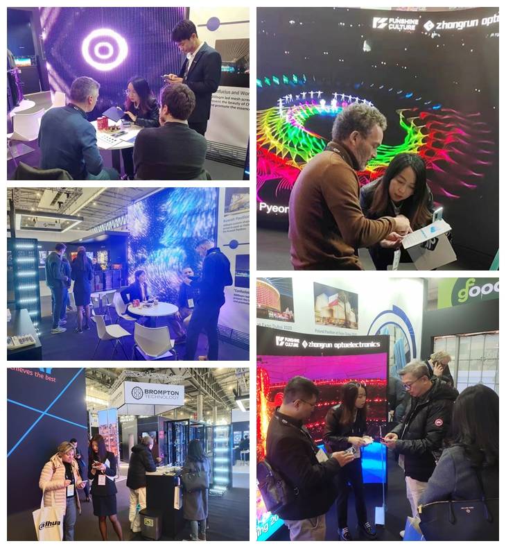 ISE作为中润光电中润光电与锋尚文明完结并购后的海外“开年首秀”,携主打产品LED贴膜屏、室表里通明屏、LED格栅屏、LED网格屏、LED柔性屏,及沉溺式、夜游亮化、商显构思等场景解决方案露脸,招引了很多客户、媒体及职业大咖停步留心,他们不断深入了解中润产品的功能、技能、事例与解决方案,现场人流不断,气氛火热。
