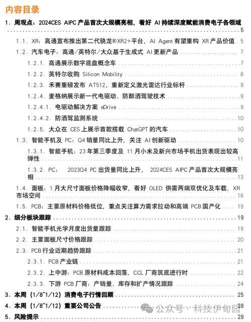 原标题:消费电子周报:2024CES AIPC产品首次大规模亮相,看好AI持续深度赋能消费电子各领域
