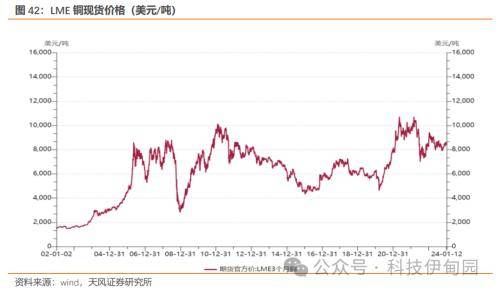 铜箔主要原材料为铜,LME3个月期货价格2023年全年震荡。23年1月下旬到达年中高点(9570美元/吨,2023年1月26号),后全年呈现震荡,截止至24年1月13号LMEE3个月期货价格为8295美元/吨,较24年最高点下跌0.18%。