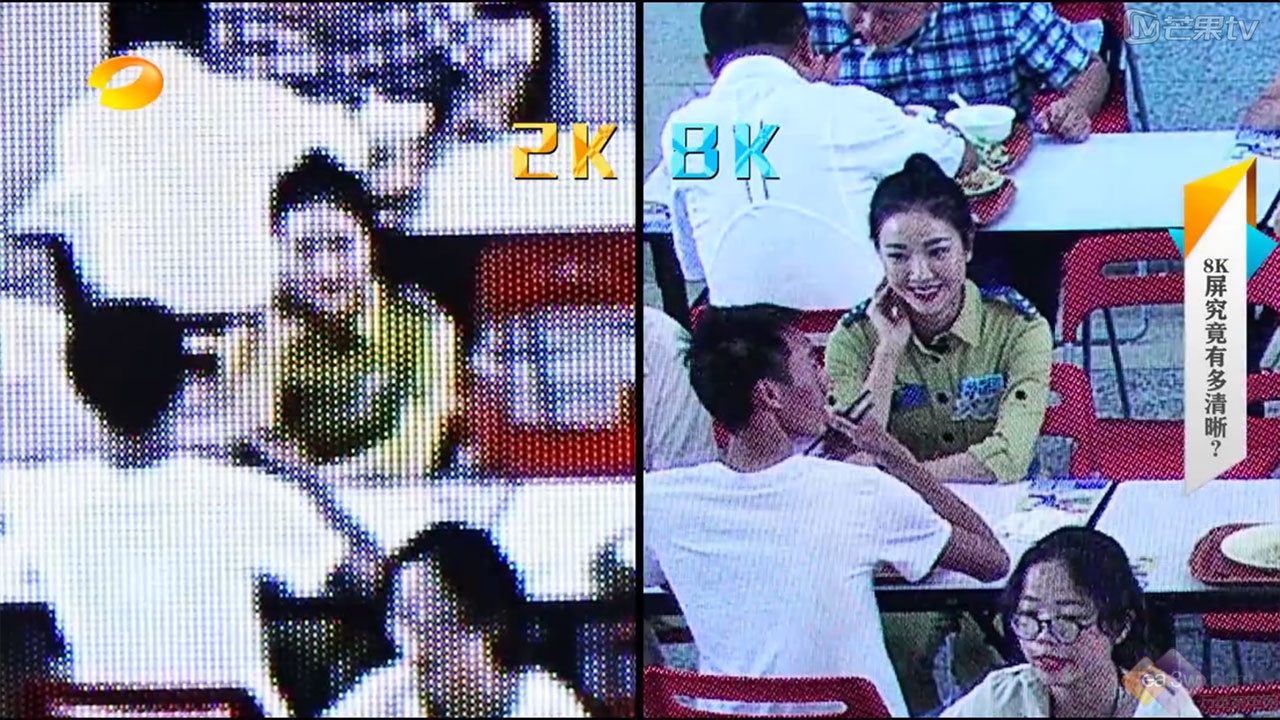 在“人脸辨认”的场景体会中,茫茫人海的餐厅傍边经过8K屏一眼就可以看清掌管人的姿态,而2K屏我尽力的辨认也可以大约辨认出那是一位穿戴黄色衣服的女性,下面戴着眼镜妹子是否戴着眼镜在2K屏傍边都无法辨认出来。