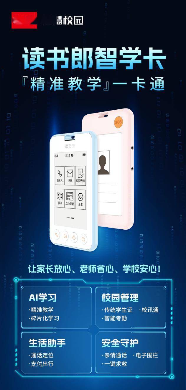 读书郎智学卡是一款将AI、大数据和无线通信技能深层次地交融,让学生、家长、学校完成三方互联,集精准教育与学校数字化办理于一体,用科技赋能教育高质量均衡开展的立异产品。