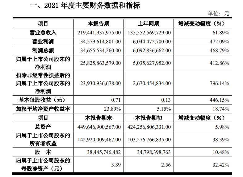 3月9日,京东方A(000725.SZ)发布的成绩快报显现,2021年完成总营收2194.42亿元,同比增加61.89%;完成净利润258.26亿元,同比增加412.86%;根本每股盈余为0.71元/股,同比增加446.15%。